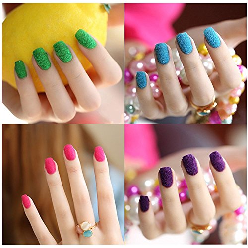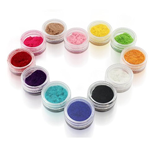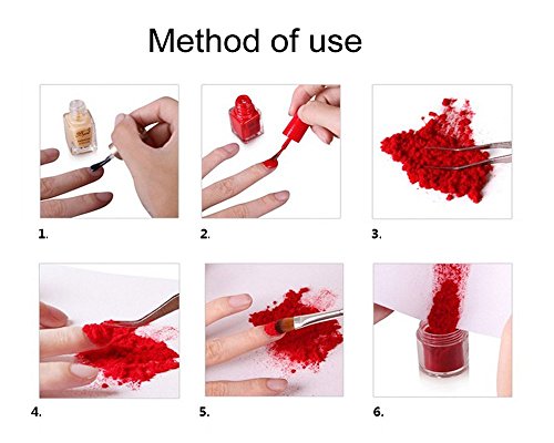 One package includes: - 12 colors velvet powder - 1 brush How to use: - Place a paper to protect the work area; - Apply base coat on your nails, wait it dry; - Apply nail polish (same color as the velvet powder), wait it dry; - Apply the second layer of nail polish, immediately put the velvet powder on your nails, get them dry naturally or use brush to press on velvet powder slightly. Please use a tweezer to mix the velvet powder before using; - Use a brush to sweep away the excess powder; - Put the powders back to the pot.