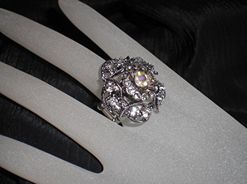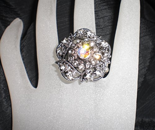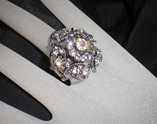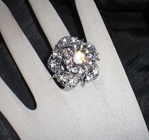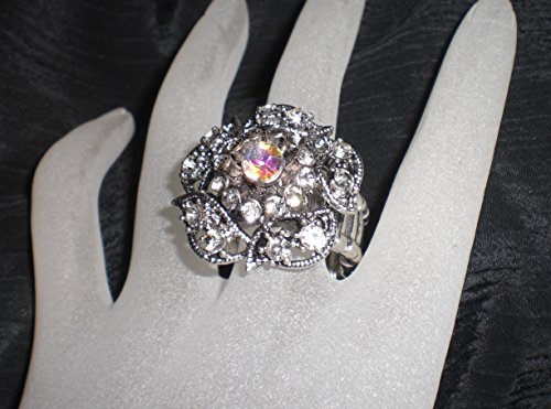 Clear Clear Ab Flower Rhinestone Antique Silver Pewter Stretch Ring | Desertcart Vietnam