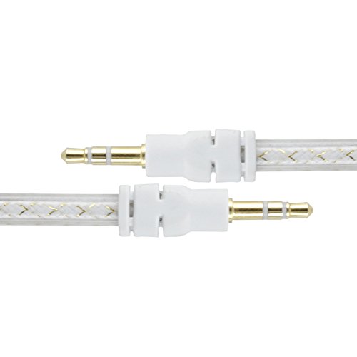 Vrlinking(TM) 3 Feet 3.5mm Male to Male Audio Stereo Transparent PE Glue Jacketed Cloth With Goldwire Braided Flat Noodle Cable [Gold Plated] Provides a Direct Wired Connection - a perfect solution to connect high performance systems that deliver music with full fidelity free of static and FM interference. This is specifically designed to take advantage of the convenient 3.5mm input jack (aux input) on your car's audio system. Compatible with: - iPhone 4S, 3G(S),2G, all iPods, iPad 2 and original iPad - All MP3 players, CD players, Laptops, Tablets and Other Music Devices with a 3.5mm audio socket - All Android smartphones - HTC, All Droids, Samsung - All Blackberry smartphones