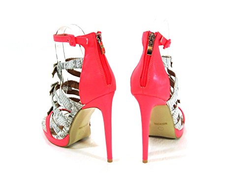 Red Kiss Neon Coral Grey Snake Faux Leather Strappy High | Desertcart Vietnam