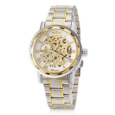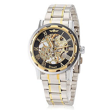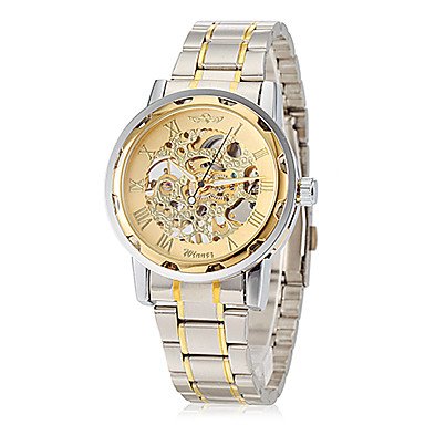 Gender:Men'sMovementtype:Mechanicalmanual-windingType:SkeletonWatchDisplay:AnalogFeature:HollowEngravingCaseMaterial:AlloyDialColor:GoldWhiteBlackCaseDiameter:41-43mmCaseThicknessApprox(CM):1.1BandMaterial:StainlessSteelBandColor:GoldSilverBandLengthApprox(CM):17BandWidthApprox(CM):1.8NetWeight(kg):0.1CaseDiameterApprox(CM):4.3