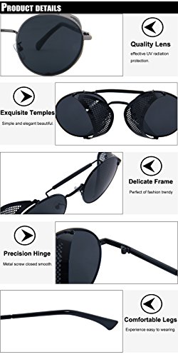 IKES Round Steampunk Sunglasses Hollow Out Unisex Steam Punk Womens Glasses UV400 IKES specializes in classic designed fashion sunglasses for different people. Fashion design, easier to dress collocation, the integration of art and science and technology, manifests individual character and individual style. TAC polarized sunglasses advantages: 1. effectively reduce glare, eliminate bright reflected light and scattered light, so messy light into parallel light, so depending on the material more clear and soft and clear. 2. polarized lenses and polarization angle in radians through professional design and processing, so that the wearer does not have scenery distortion and the feeling of vertigo. 3. Polaroid 7 layer composite materials, in line with international standards sunglasses, UV400 ultraviolet ray standard, all-round protection of the eyes, the first layer is a polarizing layer is the core of the lens, providing more than 99% of the polarizing effect, effectively absorb glare . Second, three for the adhesive layer, can effectively resist cutting, baking, bake bend, cut pieces, stand the test of harsh environments. Fourth, five for the ultraviolet absorbing layer, can absorb more than 99% of UV rays. Sixth, the seven anti-shock layer to improve the toughness, impact resistance, scratch the lenses to prevent prolonged life of the lens. 4. Another benefit of the film is extremely light, thin (thickness of 0.7mm, 1.1mm).UV400 Lenses provide maximum HD vision and decrease sun glare. Now you can see clearer and farther than ever before. Maintenance sunglasses In fact, the method of maintenance sunglasses glasses as general maintenance, cleaning, closed stacked, storage should be a habit.