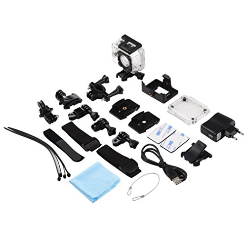 Description:─ Support hand vibration proof film and motion detecting ─ Support network Camera function (PC Camera)─ Support screen 180 ° rotation, positive and negative installation does not affect the view─ APP to connect wifi condition, can simultaneously transmit video and sound ─ With a water proof casing, allowing you to film 30 meters under water scene.─ HD screen display for convenient videos and image playback─ HDMI Output─ Web Camera─ 12-megapixel HD wide-angle lens─ Supports MOV recording format─ Video encryption enabledSpecification:─ Languages English / German / French / Spanish / Italian ─ Video Resolution:1080P/24FPS 720P@60FPS─ Video Record Format:MOV(H 264)─ Photo Record Format:JPG─ LCD Resolution:960*240 ─ Videoplayer software:MEDIA-PLAYER─ Resolution of Photos:12M / 8M / 5M─ Storage:Micro SD(Not Included)─ Compressed Format of Videos : H.264 br>─ USB Interface : USB2.0─ Power Source Interface : 5V/1.5A─ Battery Capacity : 900MAH ─ Power Dissipation : 400mA/4.2V─ Charging Time : About 3hours─ Operating System (OS) : Windows XP/VistaorAbove/Win7/Mac os ─ Materials:Plastic+ AlloyUsing method:─ To power ON─ Press the Power/Mode Button─ To power OFF─ Press and hold the Power/Mode Button─ Turn camera ON and repeatedly press the Power/Mode Button to cycle through camera modes and settings.The modes will appear in following order.─ Press the OK Button to enter the settings menu. Repeatedly press the Power/Mode Button to cycle through options and press the OK Button to select desired option. Package Content:─ 1PC Full HD 4K Wifi Action Sports Camera(With retail package)─ 1PC Waterproof Case─ 1PC USB Cable ─ 1PC helmet holder ─ 1PCbicycle frame ─ 1PC User's Manuals ─ 1set straps ─ 1pc Battery