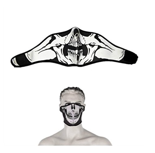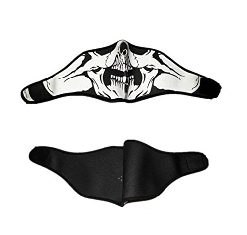 Description: Sun and wind, dust and pollution, snow and rain... Ah, your face, ear and neck are under great exposure to these harmful factors. I mean, when you are on a bicycle riding, skiing, or other outdoor sports. So if you wanna provide great protection to your face, ear, and neck, you really need this face mask to get what you want. Made of high quality and elastic wool , this face mask provides great protection to your face, ear and neck from wind, cold and snow, also stay warm. Soft, comfortable, and lightweight to wear. User-friendly design allows great protection. Featured with free breath with the cutout for the nose and small holes for the mouth. And magic tape back in the neck to keep it in place, convenient to use. It is ideal for the use when riding, skiing, and other outdoor sports. Also it is perfect to be the essential equipment of war games, paintball and hunting. With the cool ghost print, this is a great accessory to be fashion and functionality at the same time. This hood face mask is practical to be used at winter. Package Content: 1 x Outdoor sports cycling half face mask