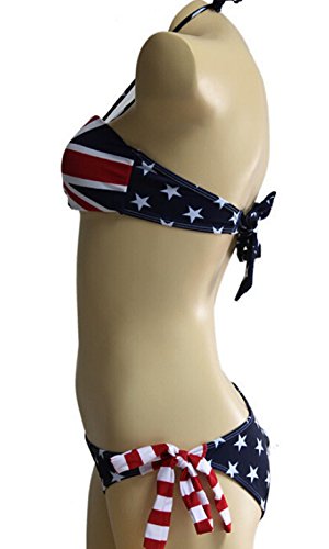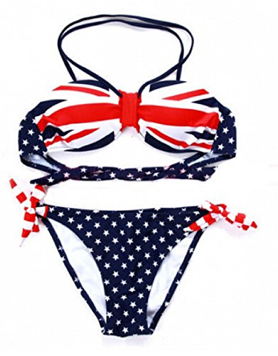 YoDa Women's Two-Piece Swimwear Hanging Neck British Flag Style Swimsuit S