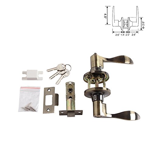 Features Fits right hand Easy installation Beautiful bronze color Matching entry door levers on right side Easy installation, quality life! Product Description Aged Oil Rubbed Bronze Privacy Door Hardware Lever is made of high quality zinc alloy. The door lock is composed of latch, strike plate and matching screws. It is designed for bedrooms and bathrooms, locking with turning buttons. Privacy sets can be unlocked from the outside in case of an emergency using a flat object to turn the slot button on the outside of the lever. Specification Material: Zinc Alloy Product Weight: 689g Product Dimension: Φ2.6"x4.8"x6.5" Package Dimension: 6.9"x6.5"x3.4" Package Includes 4 x Nails 3 x Keys 2 x Knobs 1 x Latch 1 x Strike 1 x Box Strike 1 x Instruction