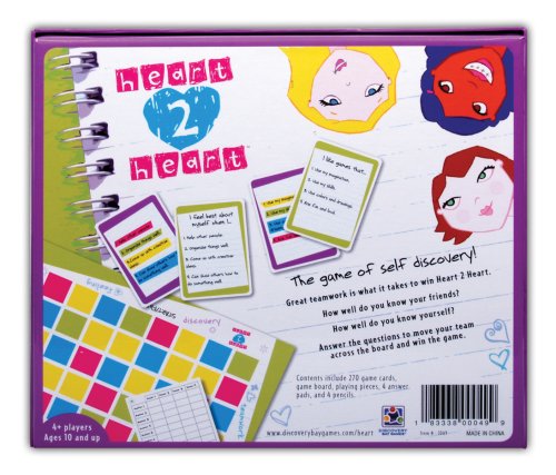 Heart 2 Heart is the super cute, totally awesome, ultimate slumber party game where good friends become best friends! Players form teams and answer questions to move across the board. Combining self awareness and teamwork, Heart 2 Heart provokes positive