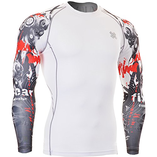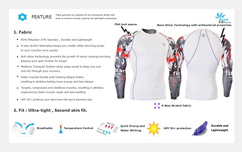 Fixgear Compression Shirt - Long Sleeve White Skin Tight Ergonomic Base Layer Shirt for Men & WomenWhen you want to get the absolute best results from your workout, how hard you train matters, and when you want to go hard and make every second of your training count, what you wear matters. You can't afford to wear anything that will get in your way of giving it your all, which is why the Fixgear Compression Shirt is the only thing you should slip on before you head to the gym, out on a run or anywhere elseThe Fixgear Compression Shirt provides multiple benefits for athletes, runners, MMA fighters, bodybuilders and anyone else who makes big demands on their bodies and on the clothing that they wear. The men & women compression shirt- REDUCES POST-WORKOUT SORENESS. White compression shirt increases oxygenation in the muscles to diminish lactic acid build-up.- LOWERS INJURY RISK. Multi-functional advanced high-tech fabric supports every muscle in the arms, chest, back and abdomen.- KEEPS YOUR BODY TEMPERATURE REGULATED. When used as a base layer shirt in cold weather, you won't feel the chill. In the summer, the four season multi useful fabric lets air flow in to keep you cool.- PREVENTS SUNBURN. With a UV protect UPF 50+ rating, the Polyester 85% Spandex 15% fabric prevents sun from penetrating its fibers- FIGHTS ODORS & WETNESS. Antibacterial wicking, diffusing, quick absorption and fast drying fabric keeps the skin feeling dry and fresh.- ALLOWS YOU TO KEEP FOCUSED. Ergonomic design & comfortable fitting fabric makes our compression clothing for women as comfortable as can be.- STOPS CHAFING. Ultra light weight, high elasticity seamless design won't irritate your skin.- PROMOTES FULL RANGE OF MOTION. Fabric stretches easily in every direction.