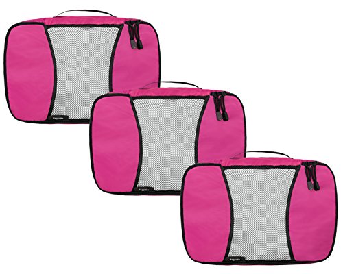 Bagpake has a reputation of focusing on the design of our packing cubes and efficient production. Our products are made in our own factory, so we have an advantage when it comes to pricing and quality. This is why we are proud to provide the best products at the most affordable prices and the highest level of service for our customers. Why choose Bagpake packing cubes? - Organization EssentialUse the packing cubes to separate and organize your tops, pants, underclothes, make-up, washcloths, etc. If you are packing for a family trip, especially with the infants, use one cube for each member and compress them all in one bag when not in use to save space. Yes, that means you never have to worry about taking the wrong luggage or how to handle baby's soiled clothing and diapers. - Breathable & VisibleNever again will you have to dig through your bag to find what you are looking for. The mesh panels added to the packing cubes offer effective ventilation, keeping their contents fresh, dry and easy to identify. - LightweightMade out of lightweight nylon fabric, these packing cubes won't weigh you down. They're easy to carry and just the right size to use as a carry-on for air travel. - Durable & WaterproofOur packing cubes protect your clothing from wrinkles, stains and other damage often associated with travel, which means you will always be ready to go. The material is water-resistant and each bag is fitted with a double zipper for convenience. Each set includes THREE packing cubes as follows: 3 Medium (M): 14.2 x 9.8 x 3.5 inchesOrder your set of Bagpake Packing Cubes today!