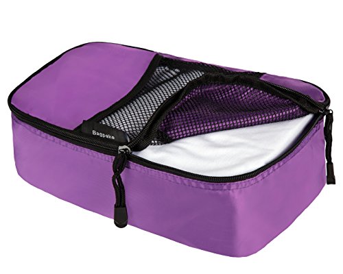 Bagpake has a reputation of focusing on the design of our packing cubes and efficient production. Our products are made in our own factory, so we have an advantage when it comes to pricing and quality. This is why we are proud to provide the best products at the most affordable prices and the highest level of service for our customers. Why choose Bagpake packing cubes? - Organization EssentialUse the packing cubes to separate and organize your tops, pants, underclothes, make-up, washcloths, etc. If you are packing for a family trip, especially with the infants, use one cube for each member and compress them all in one bag when not in use to save space. Yes, that means you never have to worry about taking the wrong luggage or how to handle baby's soiled clothing and diapers. - Breathable & VisibleNever again will you have to dig through your bag to find what you are looking for. The mesh panels added to the packing cubes offer effective ventilation, keeping their contents fresh, dry and easy to identify. - LightweightMade out of lightweight nylon fabric, these packing cubes won't weigh you down. They're easy to carry and just the right size to use as a carry-on for air travel. - Durable & WaterproofOur packing cubes protect your clothing from wrinkles, stains and other damage often associated with travel, which means you will always be ready to go. The material is water-resistant and each bag is fitted with a double zipper for convenience. Each set includes FOUR packing cubes as follows: 4 Small (S): 10.2 x 6.3 x 3.5 inchesOrder your set of Bagpake Packing Cubes today!