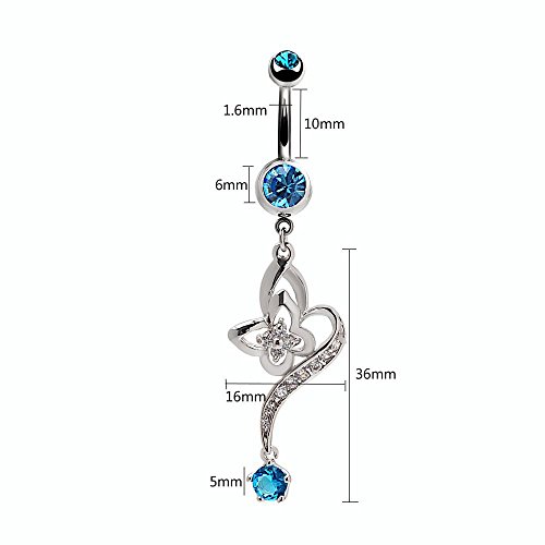 Specification: Gauge size 14 gauge ( 1.6 millimeters) Barbell length 3/8 inch (10 millimeters) Dangling charm size: Length 36mm, width 16mm Material: 316L surgical stainless steel, thick platinum white gold plated, sparkling Czech diamond Zirconia Features: Sparkling Hypoallergenic externally threaded curved barbell navel piercing body jewelry. Great for personal decoration or as a gift to your friends. Perfect to show your sexy charming navel in summer. Package included: 1pc Fashion Navel Piercing Jewelry Navel piercings (belly button piercings), are a common body piercing among women and some men. They heal relatively quickly with few complications, like ear piercings. A wide variety of decorative jewelry is available for navels - simple curved barbells, barbells with dangling pendants, and captive bead rings are common examples. It's cool, it's stylish, it's sexy ¡ª and it shows off a flat, toned tummy. Navel Barbells Measurements There has been a special standard established for navel barbells (also called "bananabells" or "bananabars", a reference to their curved shape). The standard barbell is 1.6 mm (1/16") thick and 10 mm (3/8") or 11.1 mm (7/16") long and is most commonly referred to as a 14-gauge post.