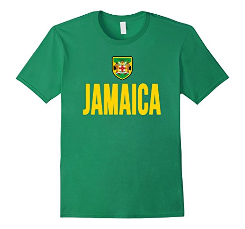 - T-shirt with Flag of Jamaica and Coat of Arms . All Jamaicans can watch World s Sport Tournaments wearing this Patriotic Tee Shirt with Pride. Perfect for Fans and Supporters ( Soccer , Football , Futbol , Futball , Running and every other Sport ). Great Alternative to National Team Jersey ( Away Uniform ). Cheap Apparel