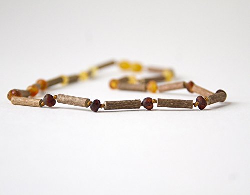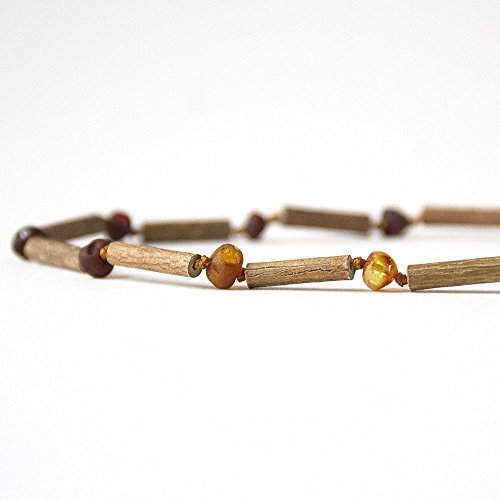 Healing PropertiesIts therapeutic properties can be good for immune boosting, digestion & chronic skin related issues. Eczema Psoriasis Gastrointestinal problems Teething (adult teeth) Acne Cavities Constipation What is Hazelwood and How Does it Work? Wood from a Hazelwood tree which is native to Quebec, Canada is said to have medicinal properties to neutralize the bodies acidity! The wood may absorbs the bodies excess acid when worn close to the body and kept wet. Hazelwood will eventually have to be replaced when the inside wood turns a dark color. What is Baltic Amber and How Does it Work? Baltic Amber is a resin that is like sap which formed over 45 million years old from the Baltic Sea region of Europe/Asia. It contains the highest quantity in nature (3-8%) of succinic acid, which produces its anti-inflammatory properties. When Amber is worn your body heat warms the resin then it may releases its oil into your bloodstream to activate this healing powers. Please measure ahead of purchase, most likely you will need help putting your own bracelet on due to the type of clasp! Pieces will vary in color/shape/size, the picture will also not be exact.Materials length - 6"-11" :hazelwood bead sz 1/2 inch, amber beads sz 5-6 mm Hazelwood from Canada Baltic Amber from Lithuania Plastic Safety Barrel Screw Clasp Nylon Cord WARNING CHOKING HAZARD. CONTAINS SMALL PIECES! A new legislation came into effect in February 2009 that mandates an age recommendation of 3 years or older due to small parts. This jewelry is not intended for children under 3 years old. If you do not see this mandate listed by other Baltic amber teething necklace retailers, they are in violation of US law. ALL teething necklaces MUST carry this mandate. Manufactured in the USA and sold by Hippie Hoopla LLC