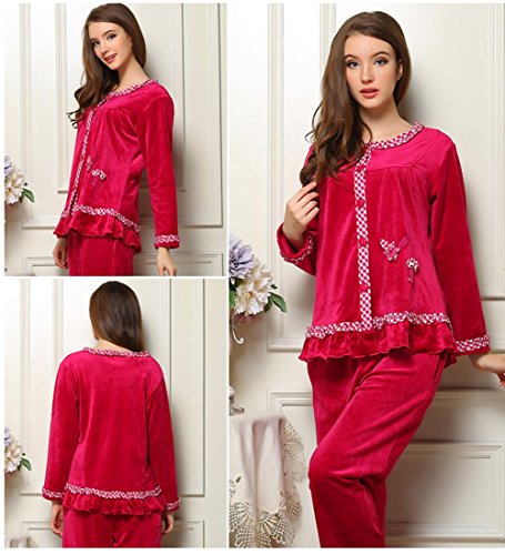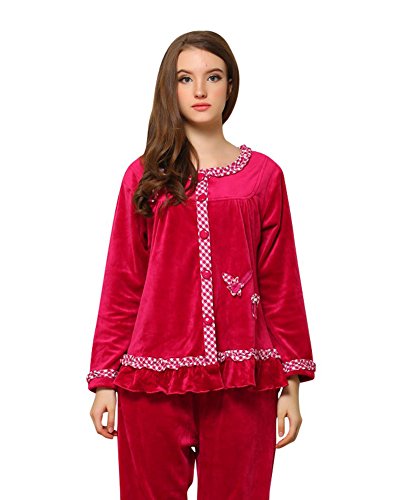 Hapajas Fleece Womens Pajamas Thermal Soft Ladies Sleepwear Medium Red