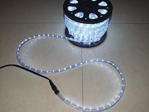These versatile LED light ropes are perfect for decorating for any special occasion or sprucing up the house and business. The LED bulbs are encased in highly flexible PVC tubing that can contour any angle and be molded into any shape. The LED rope can be cut in 3 feet increments for the perfect size needed. Colors can be swapped and changed to different colors with the included power connectors. These LED rope lights are great for decorating stairways, railings, ceilings, desks, windows, boats, clubs, parties, galleries and special holidays. Extremely flexible clear PVC tubing for better transparency and durability PVC tubing can be shaped, formed or bent in any angle to perfectly fit the space being decorated Can be cut at 3 foot increments which are conveniently marked on the PVC tubing Low energy LED lights conserve energy and has a longer life span Included connectors allow you to extend or add different colored LED ropes in a continuous series Perfect for designing intricate and elaborate holiday light displays Great for lighting up a patio or outdoor family area for subtle ambient lighting Weatherproof against damaging UV rays and varying temperature conditions UL Listed and CE Certified Spec Total Length: 100 Foot LED Bulbs: 1080 Power Cord Length: 5Ft PVC Tube Diameter: 1/2" LED Bulb Diameter: 13mm LED Bulb Spacing: 1" Bulb Orientation: Vertical Beam Angle: 45° Rated Lifespan: 50000 hours Working Temperature: -20~50°C Voltage: 110V Power Consumption: 54W-65W Package Contents: 1 x 100 Foot Flexible LED Light Rope 4 x Power Cords 6 x Power Connectors 6 x End Caps