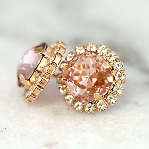 Elegant Swarovski Crystal Stud Earrings, These handmade Cushion cut shape Swarovski Earrings 24 k plated over brass are designed to make an impact set with Blush Pink Crystal and finished with Swarovski White crystal An elegant way to finish day or evening looks sweep your hair to the side to showcase. ♥ Gold Or Silver Plated over brass CRYSTALLIZEDTM Swarovski Element-choose yours at checkout ♥♥ Size Approx Size 14 mm , Post earrings♥ Nickel Free