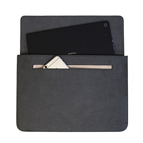 Storage Accessory Classy case with simple and basic design Three storage pockets in the back, center, and front. Back: A4 size pocket x1 Center: Ultrabook storage x1 Front: Small pocket for notebook or smartphone x1 Material to gently protect your laptop For the first time for laptop inner case, we adopted PU leather and microfiber. More flexible than felt, also durable and lighter than genuine leather. Soft to the touch but at the same time harder to slip and reduces your stress while handling. Inside is soft flannel and it protects smooth surface of your laptop Practicality and design On the outside, we used thin, soft high-end PU leather we also use on LOE original tablet cases. Two-tone color with different material looks basic yet stylish and elegant enough to carry as is. [Product Information] Size: 35 x 24 cm / 13.7 x 9.4 in Weight: 280g / 9.8 oz Material: PU Leather [Compatible With] Macbook Pro Retina 13 inch or smaller Macbook Air 13 inch or smaller Macbook iPad Pro 12"
