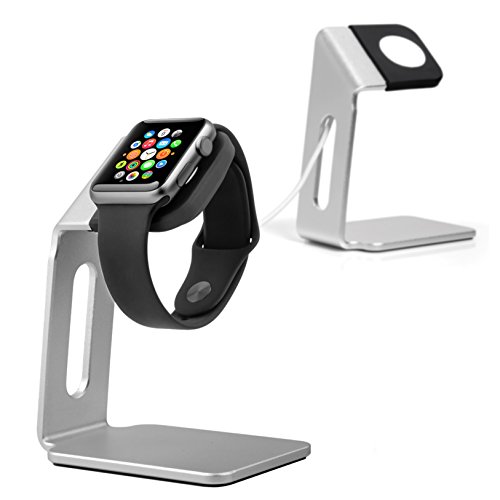 Gentle design combined different material to a comforting and stable square form. Dock area is made with TPU material so as not to scratch Apple Watch. Body has sand-blast process. Not only the look but also has luxurious texture. Unusual for Apple Watch stand, charger will be behind the dock. You can set the cable on the groove on the dock and keep it neat. Back of the stand has a silicone pad to stabilize the stand. The body has nice thickness to it. This stand also has beautiful lines and curves. It's perfect for someone who wants to use Apple Watch like a piece of art. [Product Information] Dimensions: 9.1 x 6.4 x 12 cm / 3.6 x 2.5 x 4.7 in Weight: 125g / 4.4 oz Material: Aluminum (Body) TPU (Dock), Silicone (Pad) Package Contents: Stand [Compatible with] Apple watch 38mm /42mm