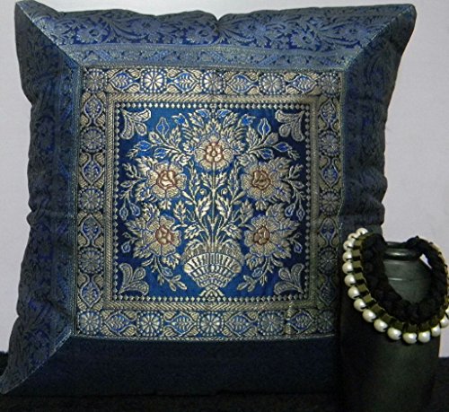Rajasthankrafts Indian Ethnic Banarasi Brocade Zari Chanderi Silk Decorative Pillow Cushion Cover Size 18 X 18 Inches CC01