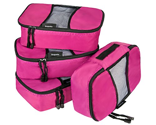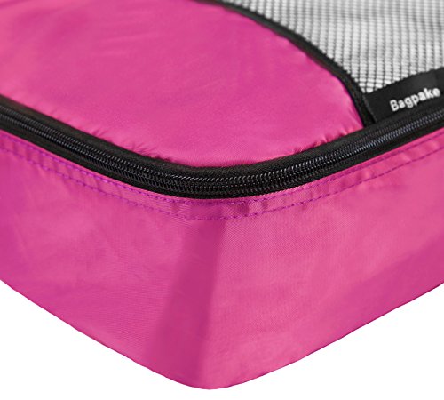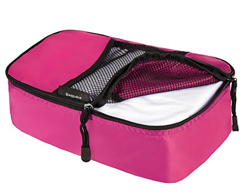 Bagpake has a reputation of focusing on the design of our packing cubes and efficient production. Our products are made in our own factory, so we have an advantage when it comes to pricing and quality. This is why we are proud to provide the best products at the most affordable prices and the highest level of service for our customers. Why choose Bagpake packing cubes? - Organization EssentialUse the packing cubes to separate and organize your tops, pants, underclothes, make-up, washcloths, etc. If you are packing for a family trip, especially with the infants, use one cube for each member and compress them all in one bag when not in use to save space. Yes, that means you never have to worry about taking the wrong luggage or how to handle baby's soiled clothing and diapers. - Breathable & VisibleNever again will you have to dig through your bag to find what you are looking for. The mesh panels added to the packing cubes offer effective ventilation, keeping their contents fresh, dry and easy to identify. - LightweightMade out of lightweight nylon fabric, these packing cubes won't weigh you down. They're easy to carry and just the right size to use as a carry-on for air travel. - Durable & WaterproofOur packing cubes protect your clothing from wrinkles, stains and other damage often associated with travel, which means you will always be ready to go. The material is water-resistant and each bag is fitted with a double zipper for convenience. Each set includes FOUR packing cubes as follows: 4 Small (S): 10.2 x 6.3 x 3.5 inchesOrder your set of Bagpake Packing Cubes today!
