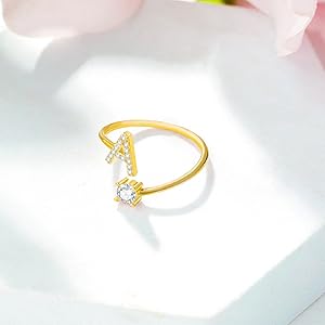 The packaging was cute and simple came with a pretty velvet bag to keep it in. It’s small and cute just like I hoped! It adjust very easily to any finger I want it to fit. The value for the money is great! It’s a great gift for birthday, anniversary, or special occasion! I love the gold plated and the diamond accents. The letter is perfect! It has tarnished some but it is still a very beautiful piece of jewelry! I can wear this for any occasion and feel beautiful! Absolutely love this ring!