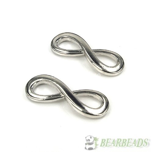 20Pcs Nickel Tone Curved Side Ways Smooth Metal Infinity Bracelet Connector Charm Beads ~Jewelry Making Supplies~