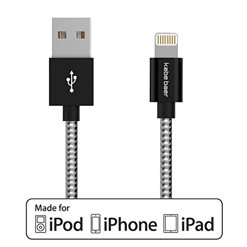 iPhone Charger,Kabe Baer 3.2ft Nylon Braided USB Sync and Charging Data Cable for Apple iPhone 6/6s/5/5S/5C/7, iPad 4, iPad Air 1/2, iPad Mini 1/2/3, iPod 5/ iPod Nano 7(2 Pack)