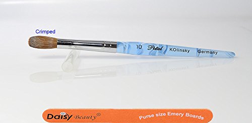 Petal Blue Mable handle Kolinsky Acrylic Nail Brush (10 Crimped) + 1 Daisy Beauty® purse size emery board.