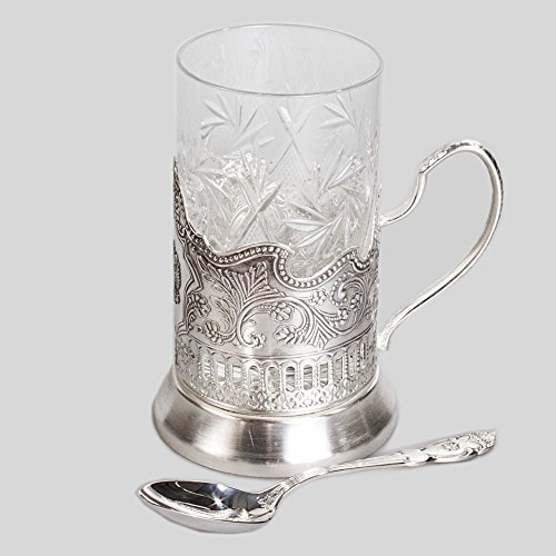 Set Contains: 1 drinking glass holder, 1 crystal faceted drinking glass, and 1 teaspoon