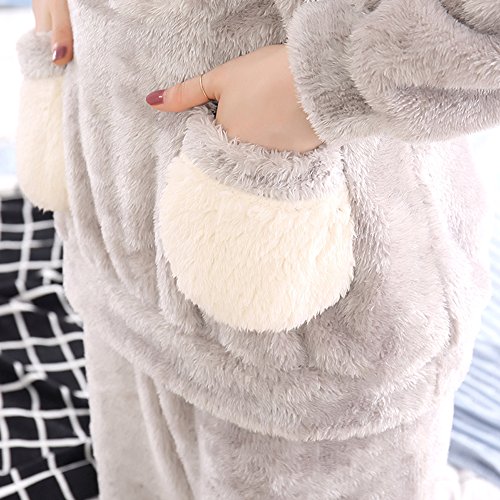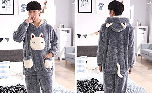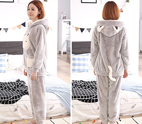 Evenika Women's Men's Cute Cartoon Flannel Thick Matching Couples Pajama Set Grey Large
