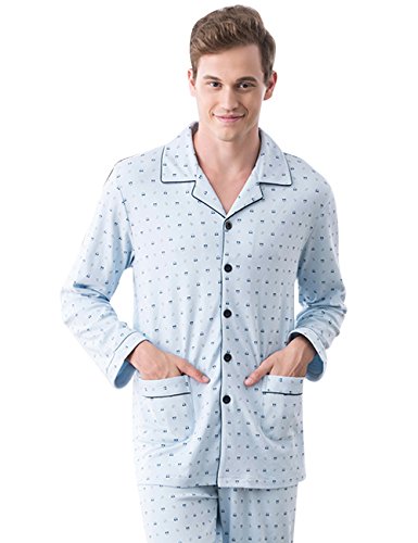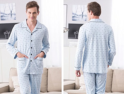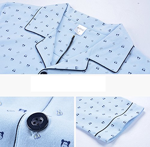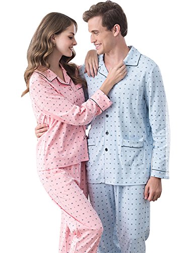 Gufuie Cotton Long Sleeve Matching Couples Pajama Set for Women Men Blue Large