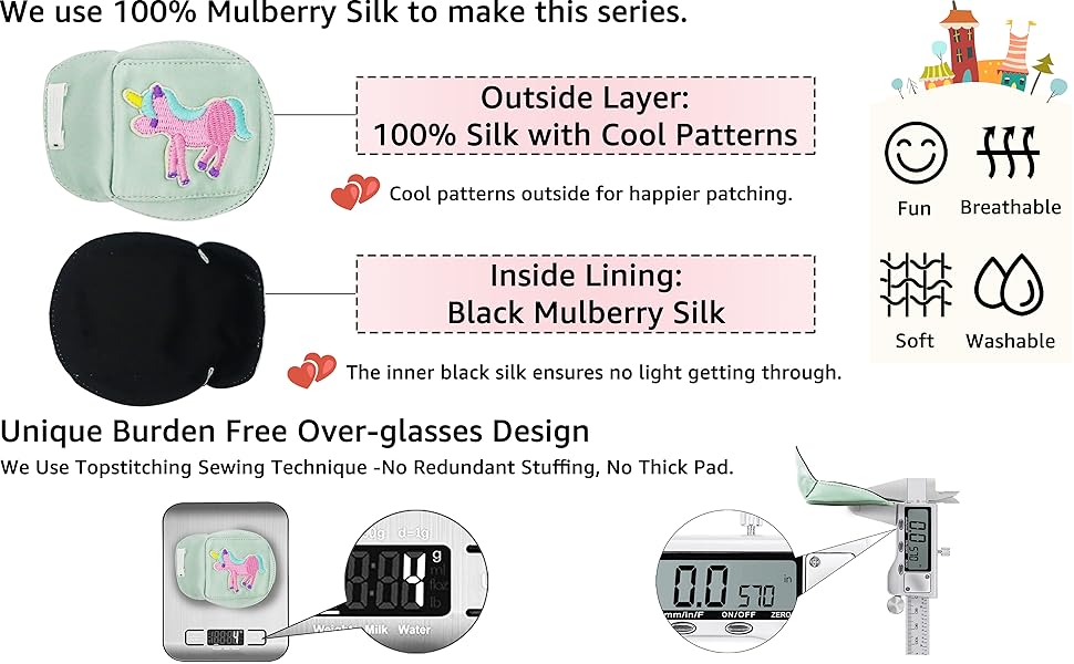 We’ve been patching for 5 months and I’ve bought every eye patch on amazon. It turns out only the sticky ones cover the eye fully. That is, UNTIL, we discovered this one. Very soft and I love the design. We love it! Thank you so much for designing this!