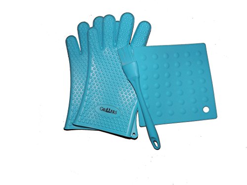 - Grillers set comes with gloves, basting brush, and silicone mat.