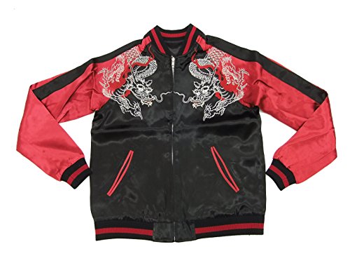 Size(in inch)/Body width /Body length /Sleeve length /Shoulder width(Small) 18.1inch 22.0inch 30.3inch -(Medium) 19.7inch 22.8inch 31.9inch -(Large) 20.9inch 23.6inch 32.7inch -(X-Large) 22.4inch 24.8inch 33.9inch -(XX-Large) 23.6inch 25.2inch 34.6inch -* Shoulder width does not be measured for Raglan sleeves"Japanesque" is a label spun-off from casualwear brand Switch Planning in Japan.Featuring traditional Japanese patterns and designs, the lineup includes pieces in Japanese sizes and silhouettes, with the materials and details retooled for today's taste.These are not just merely Japanese patterns, but pieces that have been enhanced with casual style. They've been customized to make them suitable for use in town, not just on special occasions.There is no internal batting, so the jacket is not bulky or puffy. It wears clean and close to the body.And this light piece of outerwear can be worn year-round, especially in spring and fall.The front zipper moves smoothly, and won't get stuck, with rounded edges to protect the fabric. The zipper is a special-order piece from YKK.The front and reverse sides feature curved, welted pockets reinforced with triangular, gusseted stitches.*Note that the material used in this product is extremely delicate. The material is susceptible to damage from friction and wear, and its color may wear or fade in the sun. Note that the embroidered accent is extremely delicate, so avoid striking it against surfaces. Tumble drying should be avoided, as it can cause the garment to lose shape, fray, or shrink.The souvenir jacket originated duringthe early days of post World War II. The jackets featured a variety of oriental designs(eagle,tiger,dragon) and/or the servicemen's very own designs of their unit or base name,etc. Later, souvenir jackets became commercialized and sold through Post Exchanges throughout Japan.