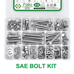The Foliv 212PCS SAE Hex Bolts Nuts Flat Spring Washers Assortment Kit is a comprehensive collection of heavy-duty 304 stainless steel fasteners, designed for durability and versatility. This kit includes 53 pieces of hex bolts, nuts, and washers in 10 different SAE sizes, all conveniently organized in a transparent storage box. Perfect for professionals and DIY enthusiasts alike, it offers reliable performance in humid environments and comes with excellent after-sale support.