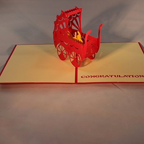 Try something different! Instead of sending a bland $6 card store greeting card, send a Love Our Gifts 3D Baby in Carriage card that will amaze your friends, relatives or significant whatevers. Guaranteed they will call you to thank you for such a beautiful, artistic and fun card. These will make everyone smile with joy. Great for for any Baby related event..birth, shower, invitation, with or without a gift. Made of fine paper, each card 6" by 4", intricately cut and hand assembled, Love our Gifts 3D cards are shipped with a matching mailing envelope and a protective plastic envelope. Ample room for your personalized message