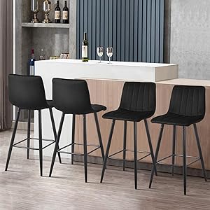 The TUKAILAi Black Bar Stools Set of 2 combines luxurious velvet upholstery with super thick sponge padding for unmatched comfort. Featuring a sturdy crossed metal footrest and legs, these stools offer reliable stability and durability. With sleek modern design and ideal dimensions for kitchen counters or home islands, they bring both style and function to your space.