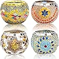 The DEAYOU 4 Pack Glass Candle Holders feature stunning Turkish Moroccan mosaic designs, handcrafted from premium glass. Each holder is uniquely made, ensuring durability and a captivating light display. Perfect for various occasions and versatile enough to serve multiple functions, these holders are a must-have for any stylish home.