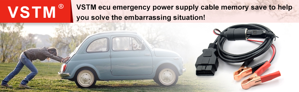 The VSTM OBD II Memory Saver features a 3-meter cable with gold-plated pins for superior connectivity, an 8A fast-blow fuse for instant overload protection, and heavy-duty 6AWG pure copper wiring. Designed to maintain your vehicle’s ECU memory during battery replacement, it works with any 12V DC power source, including jump starters and cigarette lighter sockets, ensuring a seamless, worry-free battery swap every time.