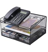 This silver telephone stand and desk organizer combines a sturdy powder-coated alloy steel frame with a space-saving multi-functional design. Featuring an angled phone holder, letter tray, and pen container, it keeps your workspace tidy and professional while protecting users with smooth edges. Measuring 10.04"W x 13.98"D x 7.28"H, it’s ideal for office, school, or home use.