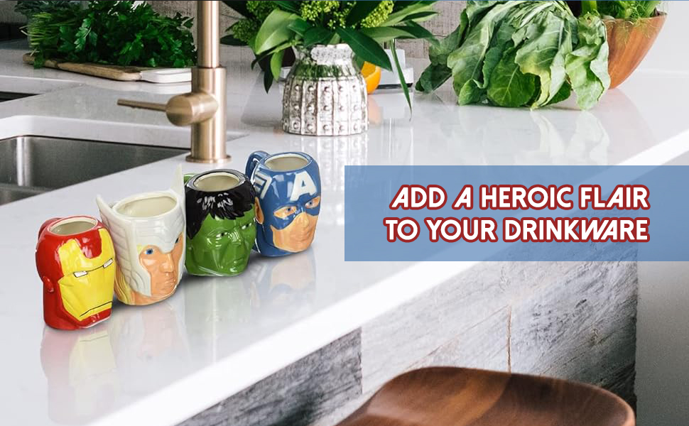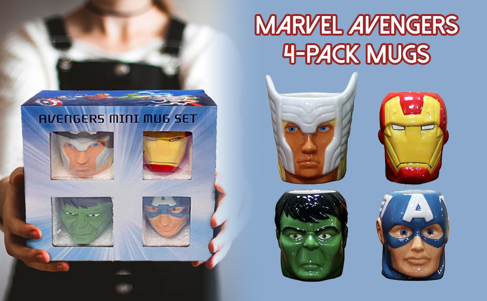 The Marvel Avengers 4-Pack Mugs are officially licensed, BPA-free ceramic cups featuring iconic superheroes like Hulk, Captain America, and Iron Man. Each mug holds 6 ounces, perfect for your favorite beverages, and is designed to be a standout addition to any Marvel fan's collection. Hand washing is recommended to maintain the vibrant designs, making these mugs not just functional, but a collectible piece of art.