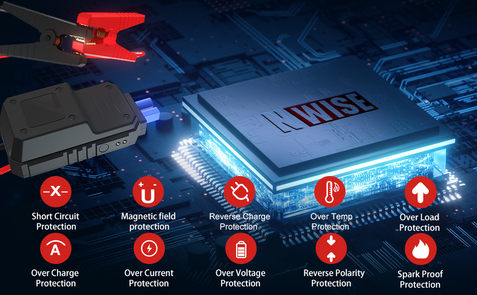 The NWISE Car Jump Starter TP20PRO packs a powerful 2000A peak current and a massive 20000mAh battery to jump-start vehicles up to 8L gas or 7L diesel engines instantly. Featuring smart jumper clamps with 10 safety protections, a user-friendly LCD display, and a versatile 4-mode LED flashlight, it doubles as a fast-charging power bank for all your USB devices. Compact, rugged, and reliable across extreme temperatures, it’s the ultimate emergency and everyday power solution for modern drivers.