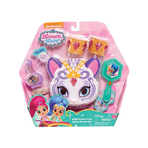 Oh my Genie! The Shimmer and Shine Wish Come True Purse Set includes everything you need to create real genic magic!�This sparkly purse comes shaped like Shine's precious pet tiger cub Nahal and comes with a play brush, two bangles, stickers & a magic wish necklace.�Wear the necklace and turn the gem to reveal three different magical wishes! Which wish will you choose? The perfect gift for every Genie in training!