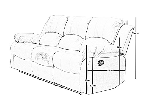 Filling materials and covering fabrics meet the requirements for resistant to cigarette and match ignition in the 1988 safety regulations. We recommend that you check that the suite will fit your home. Free Premium Delivery excludes Northern Ireland and Islands. We do deliver to Scottish Highlands surcharges may apply. Delivery is by our specialised furniture courier (one of the biggest furniture distribution company in the country). You'll receive a phone call from our delivery team usually within 1-2 working days to arrange a delivery date which will suit you. Dispatch time 1-2 days, delivery usually within 3-5 working days. (In the event of any mistakes or delays we sincerely apologise in advance and will try our utmost to rectify the problem ASAP). On the day of delivery Delivery will be carried out by two men, delivering to the room of choice, set-up** and recycle the packaging free of charge. (Surcharges may apply for complicated circumstances). Dimensions (approx.) 3-Seater W: 202cm D: 98cm H: 96cm Seat H: 46cm You are more than welcome to purchase any combination you wish. All recliners listed above are all the same spec. Going on holiday worried to miss your delivery?? Place your order to ensure that the stock is reserved you and don't worry we will not deliver until you have confirmed a date. Need your old sofas removed/recycled? Please contact us on 0203 519 8667 *Available upon request. **(in ordinary circumstances).