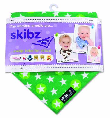 You'll be dazzled by this gorgeous green dribble bib - its twinkly stars will bring out the sparkle in any baby's eyes! Perfect for dribbly babies who need a little extra absorbency. And no Skibz bib would be complete without our must-have designer logo - making Skibz a perfect accessory to any outfit. 100% cotton bib with adjustable popper fastening.