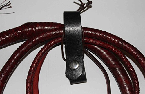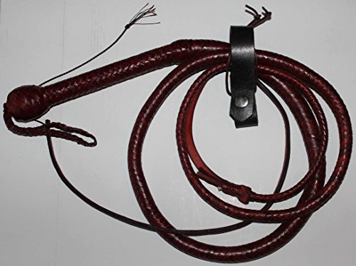 All of our bullwhips are made by hand from high quality cowhide leather and include 1 factory applied leather dressing, leather belt holder, spare fall and 5 crackers (poppers). A bullwhip consists of a handle section, a thong, a fall, and a cracker. The main portion of the bullwhip's length is made up of a braided body or thong. Made of many strips of leather, the number of braids or plaits is an important factor in the construction of the whip. Unlike in the stock whip, the thong connects in line with the handle (rather than with a joint), or sometimes completely covers the handle. The handle is usually short, being between 8 and 12 inches long. The internal structure is now hard wearing nylon which is chain loaded for optimum balance. This helps maintain the whips fast and positive action while making it less susceptible to stretch or creep during the breaking in. Our whips are fantastic value for money and of a quality you would generally have to spend at least twice the amount to come close to. Talk is cheap as they say, we can tell you how good our products are and competitors can tell you the same but we put our money where our mouth is and offer a NO QUIBBLE MONEY BACK GUARANTEE, not many other suppliers are prepared to do this. If you are not happy with the quality of your whip when you receive it simply contact us and post it back to us within 14 working days, on receipt we will refund the full price of your whip and any accessories purchased. This is not a gimic this is a serious commitment to customer service as we are sure you will be amazed at the quality and value for money and offering this guarantee gives you complete peace of mind when you place your order. On top of the money back guarantee we also offer a full 12 month repair service. Should your bullwhip fail in the course of 'normal' use and you do not continue to use it while damaged we will repair or replace it free of charge you simply pay for the shipping.