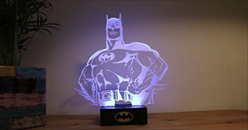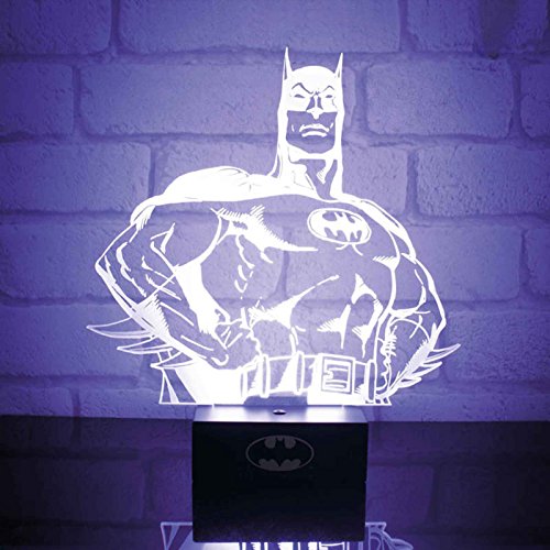 Consisting of a laser etched acrylic Batman with a dual powered light base, this is a mood light like no other and creates a Batman image. The light is powered by battery and USB, and comes with a 1.5m (approx. 5ft) length micro USB cable included. Batman is the legendary comic book hero from DC Comics. First appearing in Detective Comics in 1939, he has since gone on to become a global icon of popular culture, featuring in blockbuster movies such as Batman Begins, The Dark Knight, and Batman v Superman: Dawn of Justice, as well as countless TV versions, graphic novels, and video games like Arkham Knight. Batteries are not included, but the unit takes 3 x AA batteries when not using the USB power function. The rated input is 5V DC 500mA 2.5W. Not suitable for young children, recommended for ages 8 and above. Instruction leaflet included. The Batman Hero Light is an officially licensed DC Comics product.