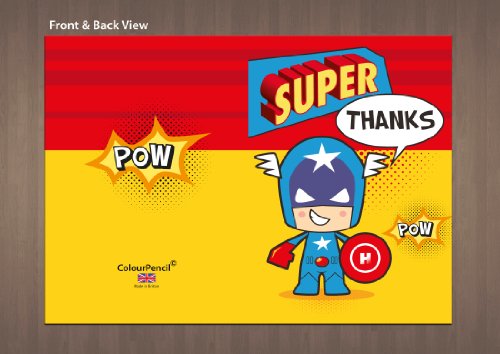 Pack includes 20 x Super Hero A6 Postcard size thank you cards and envelopes. Each pack contains 4 cards of 5 boys/characters dressed as superheroes to make 20 cards in total. The perfect way to thank family and friends.