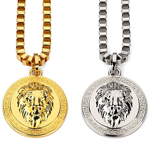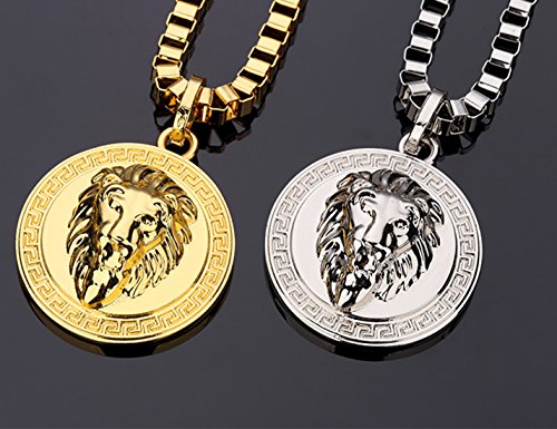 CACTUS88 Fashion 2 Colors Gold Plated Exaggerate 3D Lion Head Coins Style Pendent Necklace