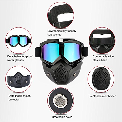 Mask Size: W:19 x H:18 CM One size fits most open face, half face, or vintage helmets (Buco, Shoei, Biltwell and so on...) Mouth mask can release. 100% Brand New Mat Black Goggles Frame Frame Material: ABS raw frame. Specification: Higher hardened surface, good anti-chemical; and the stronger elasticity bring less deformation or any broken. Lens Material: PC lens. The glass can be hardened, coated, anti-fog. After be hardened, the glass have good anti-impact and anti-scratch; after be coated, the glass have good anti-impact and anti-scratch anti-UV. Use optics design of the human body. Good exhaust ventilation and widely vision. It can be avoid strong winds, snow grains, mirage, and all kind of strong light. Sponge Frame Material: Sponge covered by corium. Safely cling to face, the softly and exquisite material void to bring any unsuitable feeling to face. Certificate:CE Certificate Package include:1x Game Hunting Motorcycle Riding Face Guard Mask + Goggles